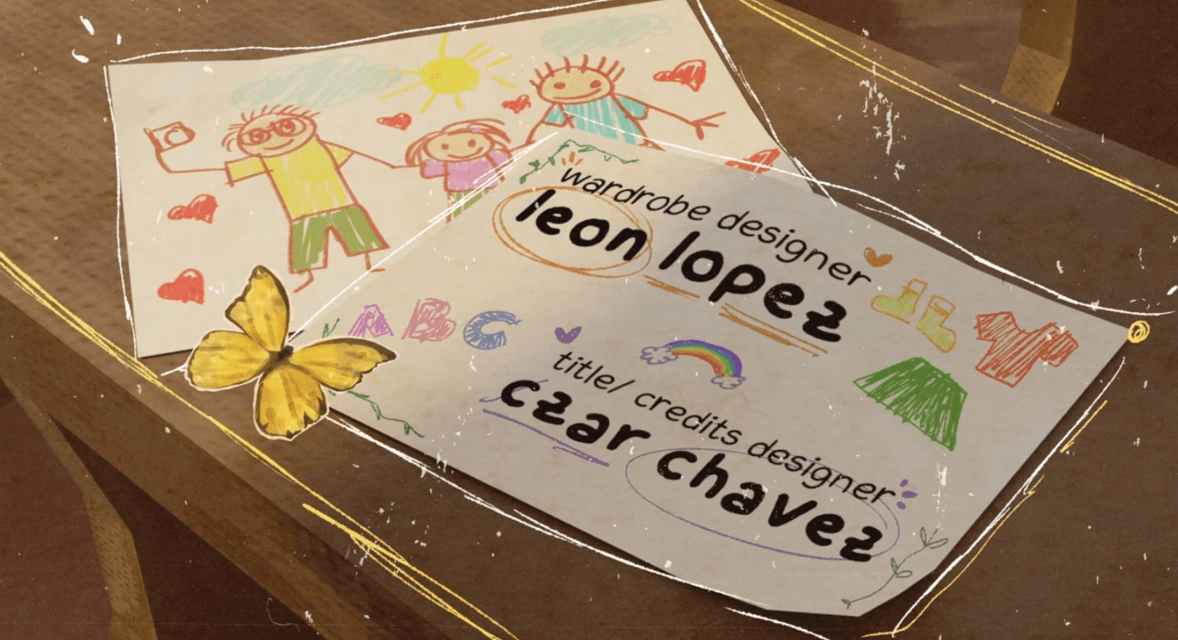 For Little One's title sequence and post-credits visuals, the goal was to creatively interpret the director’s vision while adding my own artistic flair. Opting for a playful, scribbly 2D aesthetic to contrast the film’s polished 3D animation, making a contrasting visuals. The post-credits sequence was designed to highlight significant moments from the film, while also reflecting the contributions of the crew that ties their roles to the film’s narrative and artistic direction.